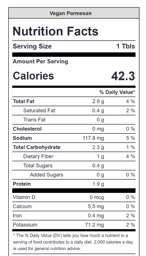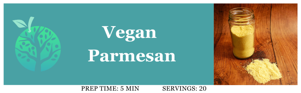 Don’t let the word “vegan” throw you off. This parmesan recipe is for everyone—and every dish! Only 5 minutes of kitchen labor and you’ll have an absolutely craveable topping for almost anything.